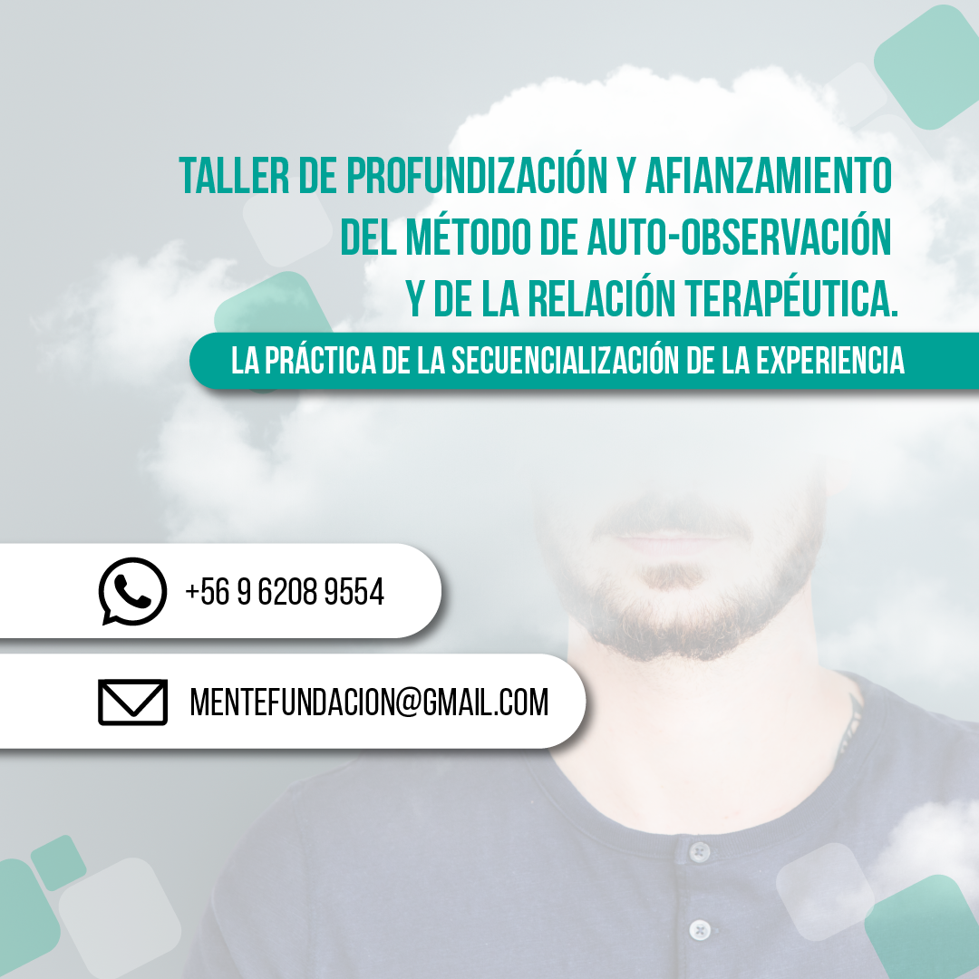 - Taller 1: Aplicación del método de la auto-observación guiada para la secuencialización y la construcción del contexto de la experiencia. Fecha: jueves 26 de octubre, de 19:30 a 21:30 hrs de Chile.